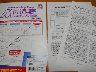 PDFを「A4ノンカーボン紙の複写紙」に(レーザープリンターかインクジェットプリンター)で各2部づつセットで両面印刷すれば、そのまま「業者の控え用とお客様用」として使用できます。